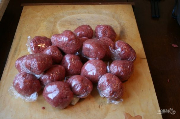 Фарш можно сделать из одного вида мяса или нескольких. Если не планируете использовать его сразу, тогда разделите на кусочки, упакуйте в полиэтилен и заморозьте. Такой фарш можно хранить несколько месяцев в морозильной камере и использовать его для котлет, для фрикаделек, тефтелей и прочих блюд.