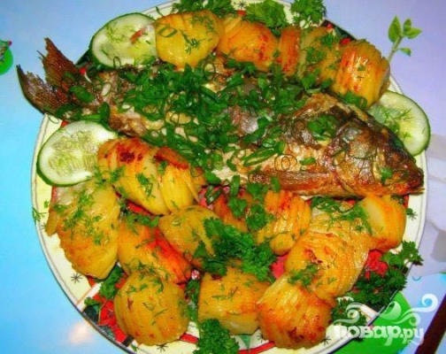 Карп очень хорошо сочетается с картофелем. Карп с картошкой приготовленный в духовке можно подавать как на обед, так и на ужин. Готовить его совсем не сложно.